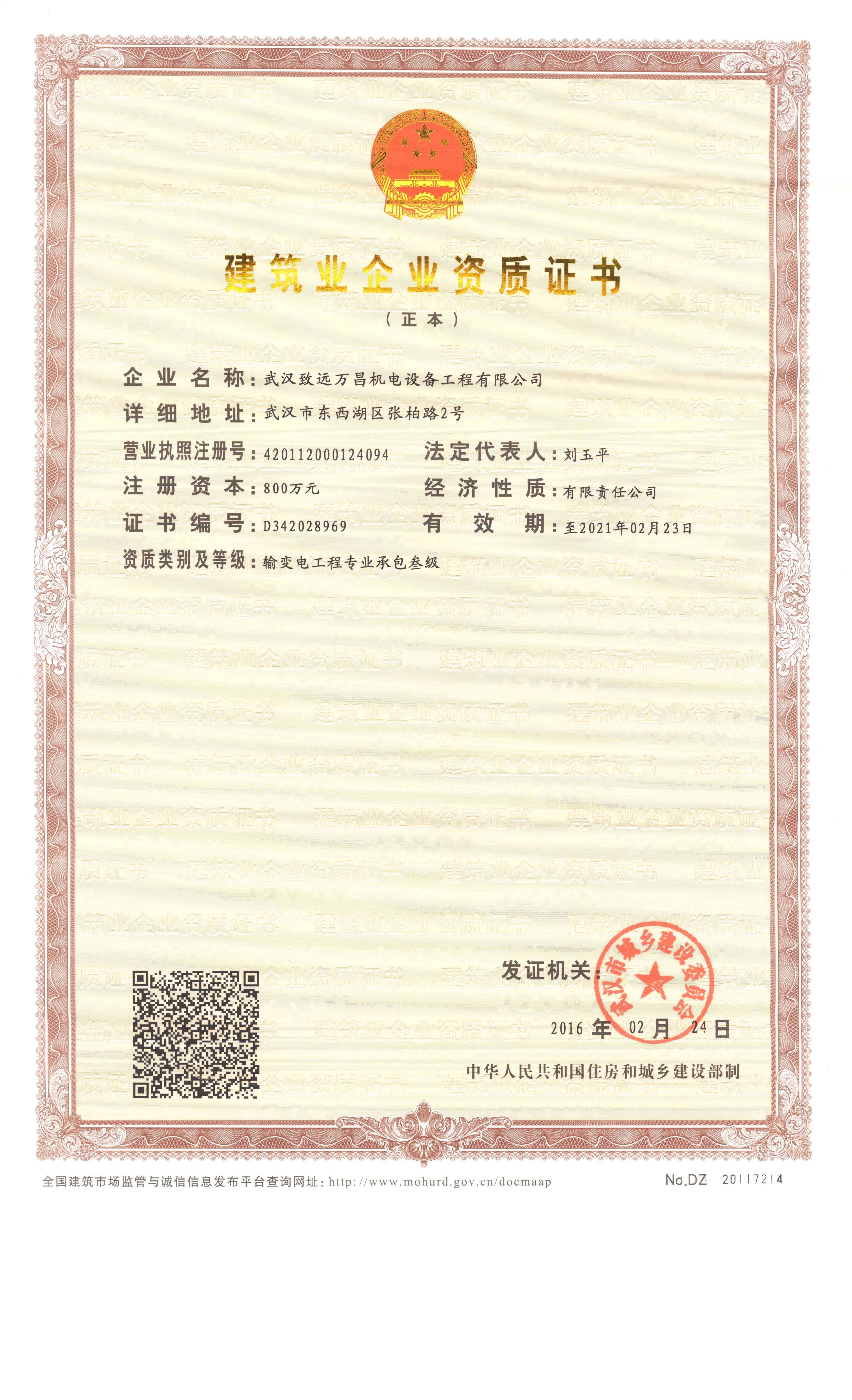 致遠(yuǎn)萬(wàn)昌資質(zhì)證書(shū)