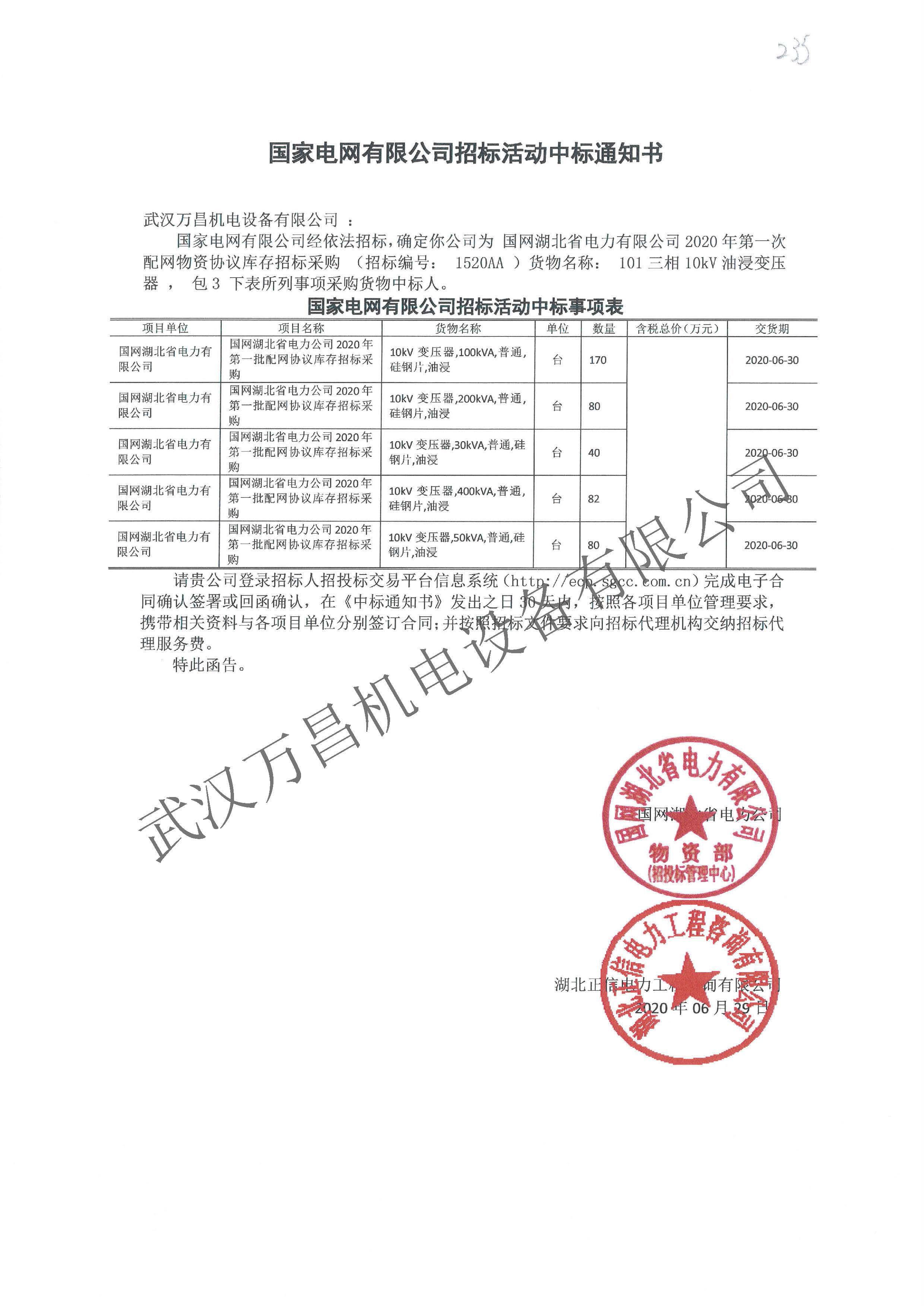 2020年中標(biāo)國(guó)網(wǎng)湖北省協(xié)議庫(kù)存項(xiàng)目